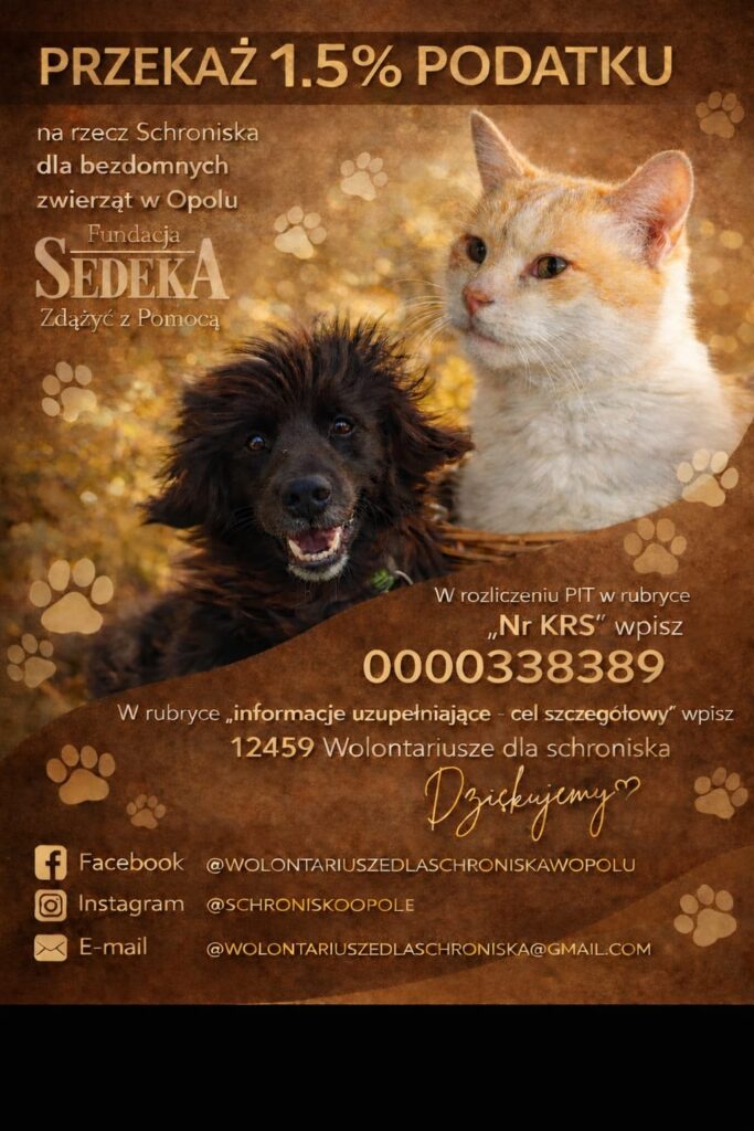 Zacznij 2026 rok od dobrego uczynku i oddaj 1.5% na bezdomne zwierzęta ze schroniska w Opolu