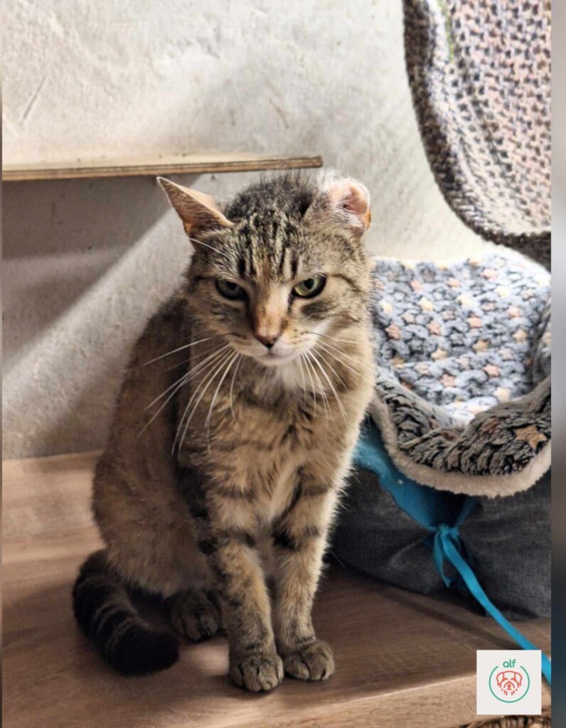 Ta piękna buraska to Rysia. Troszkę dzikuska, ale ostatnio zrobiła się ciekawska i jakby bardziej odważna. Na razie niedotykalska, czmychająca przed zainteresowaniem człowieka, ale zupełnie nieagresywna. Z powodu przebytej choroby, ma zdeformowane ucho. Rozsądny i mądry dom, który wie, że kotu zawsze trzeba dać spokój na tyle czasu ile kot potrzebuje, na pewno świetnie poradzi sobie z Rysią. Rysia z powodu przebytej choroby ma zdeformowane ucho, które tylko dodaje jej uroku. Wysterylizowana, zaszczepiona, posiada czip.