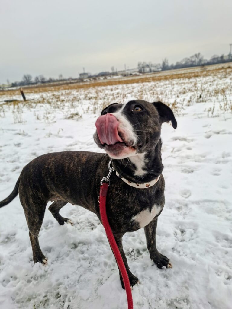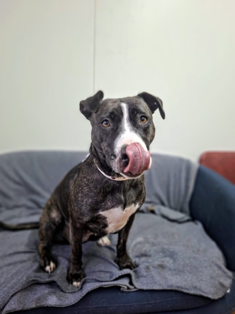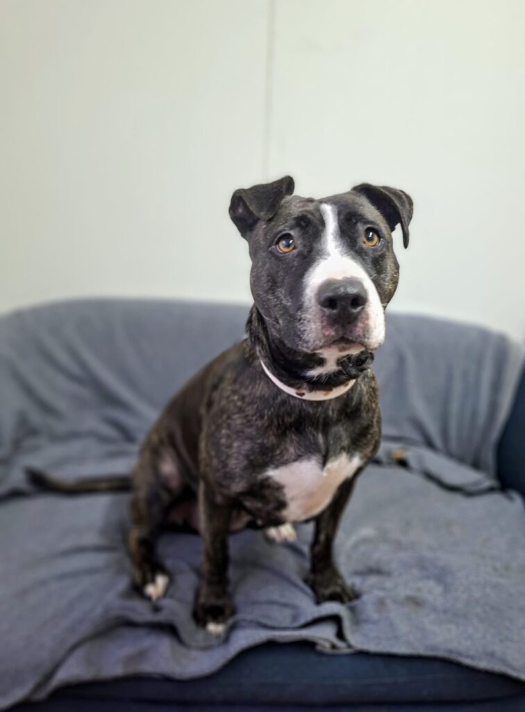Poznajcie Bellę – sześcioletnią suczkę w typie amstaffa, która całym sercem kocha ludzi ❤️