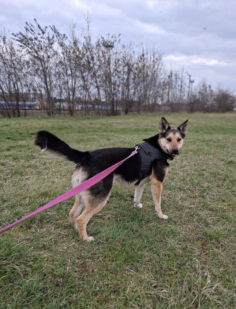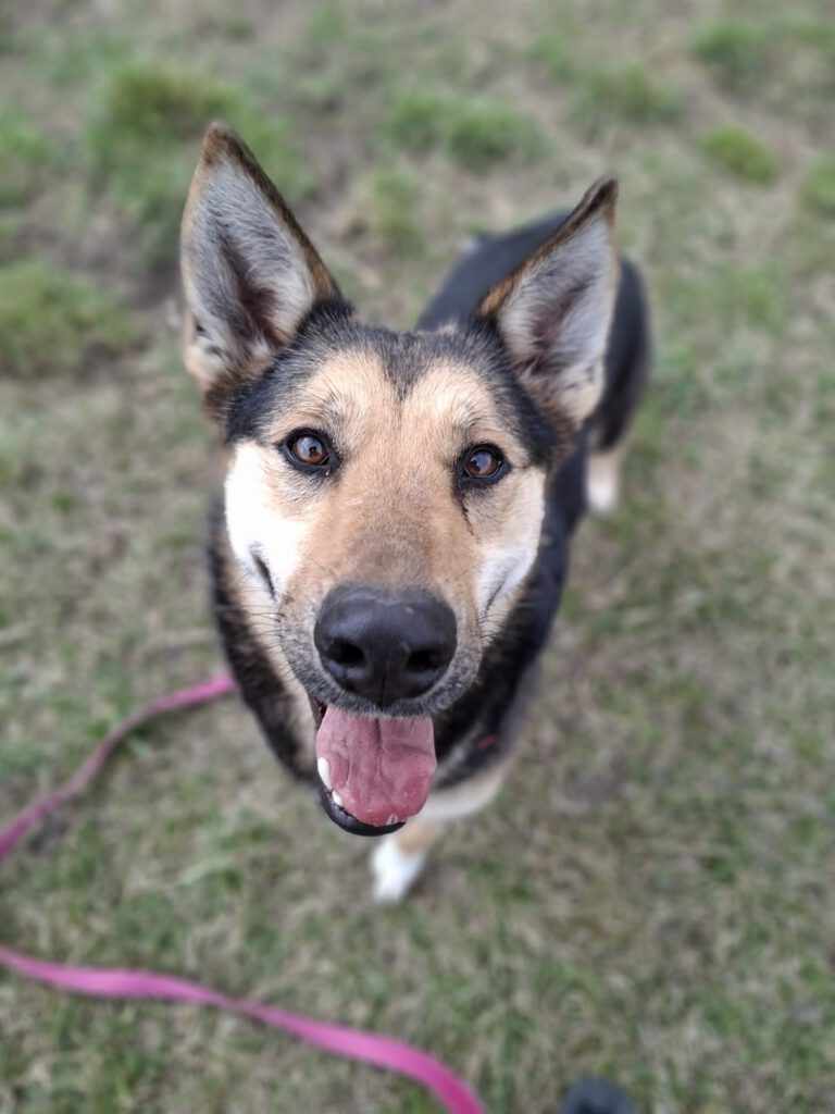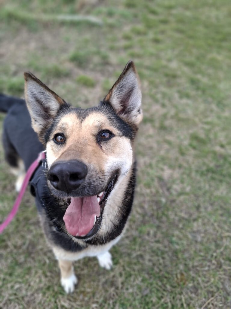 Mira ma około dwóch lat i choć powinna znać tylko beztroskę, poznała już to, czego żaden pies nie powinien doświadczać. Przyjechała do nas z Ukrainy z terenów, gdzie codziennością jest strach, hałas i niepewność jutra.