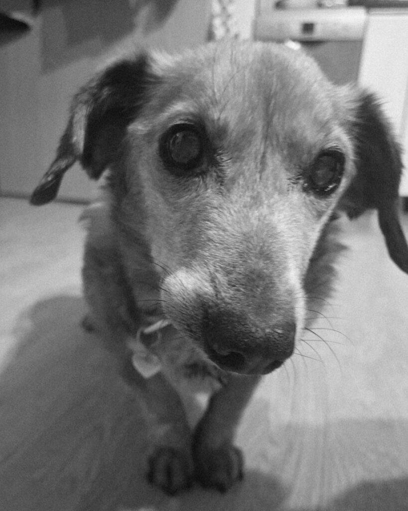 – pieska, który na jesień życia trafił do schroniska. Schorowany, samotny, odrzucony wtedy, gdy najbardziej potrzebował człowieka.