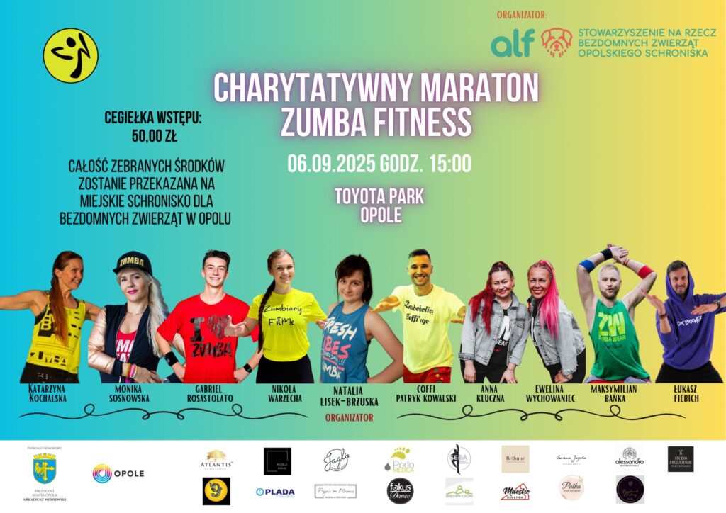 Zapraszamy na charytatywny maraton Zumba Fitness z którego całość zebranych funduszy trafi na rzecz Miejskiego Schroniska dla Bezdomnych Zwierząt w Opolu.